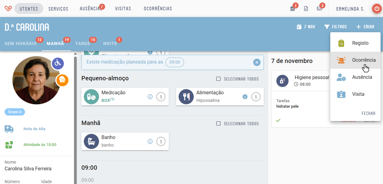 - No menu de navegação, selecione Utentes e escolha o utente.
