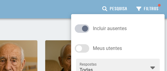Na vista Utentes, por predefinição, os utentes ausentes não aparecem na lista.