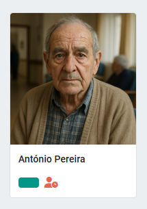 Os utentes que têm saídas ou entradas no dia atual permanecem na lista. Estes utentes são identificados com , que aparece nos cartões de todos os utentes ausentes e permite ver o detalhe das ausências.