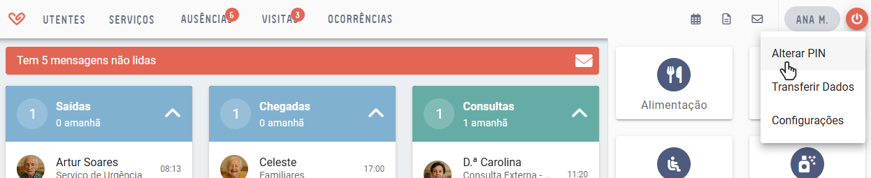 Os utilizadores com este perfil podem aceder a Conta > Utilizadores > App Registo, onde é possível redefinir o PIN.