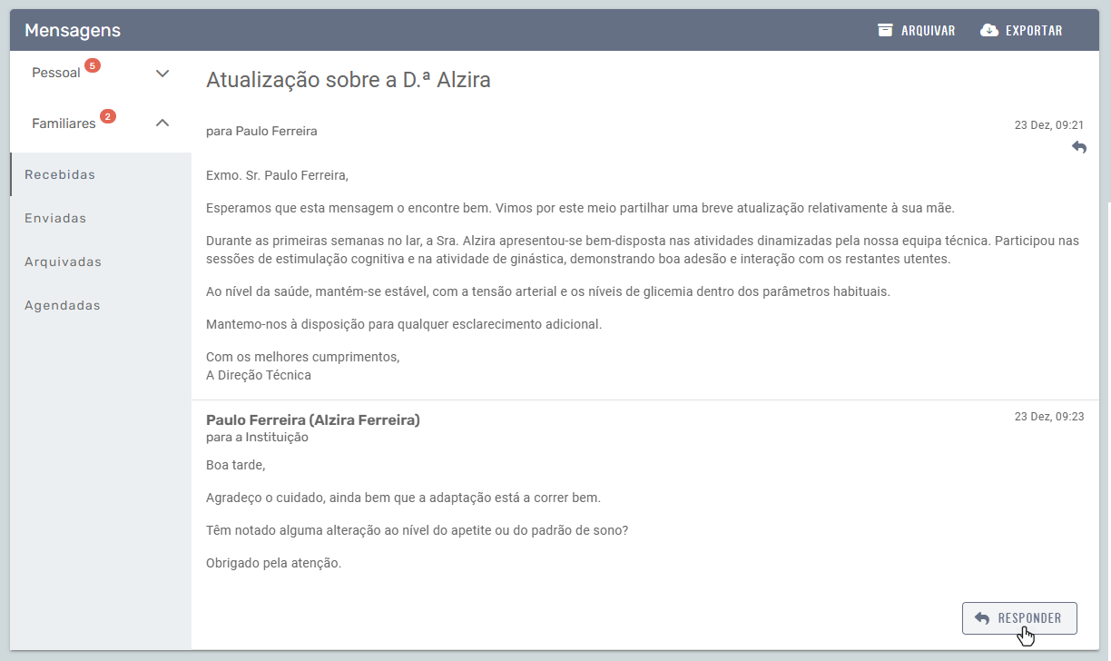 Responder a mensagens de familiares